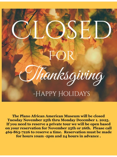 The Plano African American Museum is cherished museum that showcases our community and cultural history. Our museum's mission is to provide visitors with an enriching experience that inspires creativity and curiosity. Our desire is to tell the stories of our past to insure our future. We offer guided tours, workshops, and educational programs for all ages. Come and explore and discover the richness of our cultural heritage.